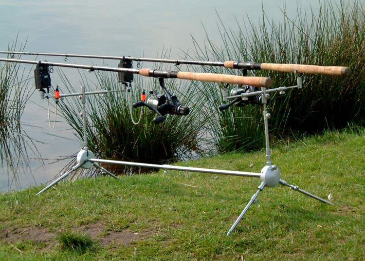Вообще то нам нужно еще что-то, к чему крепить сигнализаторы и выбор наш состоит либо в род-поде (подставке) либо в одиночной стойке. Лично я выбираю стойки, если грунт позволяет, так как это дает мне больше гибкости - я могу расположить удилища как угодно и направить их в совершенно различных направлениях. Они более устойчивы при ловле в корягах и намного легче и занимают меньше места чем подставки. Естественно они не годятся на бетонном берегу или деревянной площадке, именно поэтому я и приобрел дешевый род-под. Ищите стойки, которые снабжены винтом внизу, как шуруп, что позволяет воткнуть их практически в любой грунт, плюс они чуть более безопасны в использовании на песчаном или сыпучем грунте.