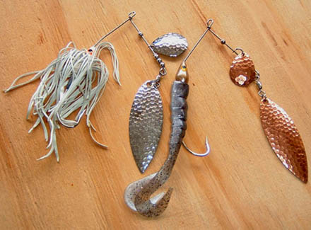| Слева направо: стандартная вертушка, баззбейт и спиннербейт |