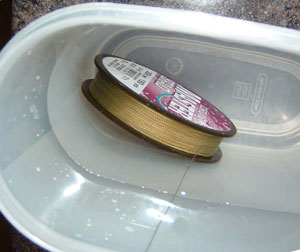 Если вы сделали все что сказано выше на вашей катушке осталось еще 75 метров плетенки. В следующий раз вам не нужно повторять процедуру со стойками, просто положите катушку с плетенкой в пластиковую коробку с водой и наматывайте ее прямо отсюда. В любом случае первые несколько забросов делайте с большой осторожностью, постепенно наращивая расстояние заброса, чтобы плетенка правильно улеглась на шпуле.