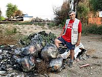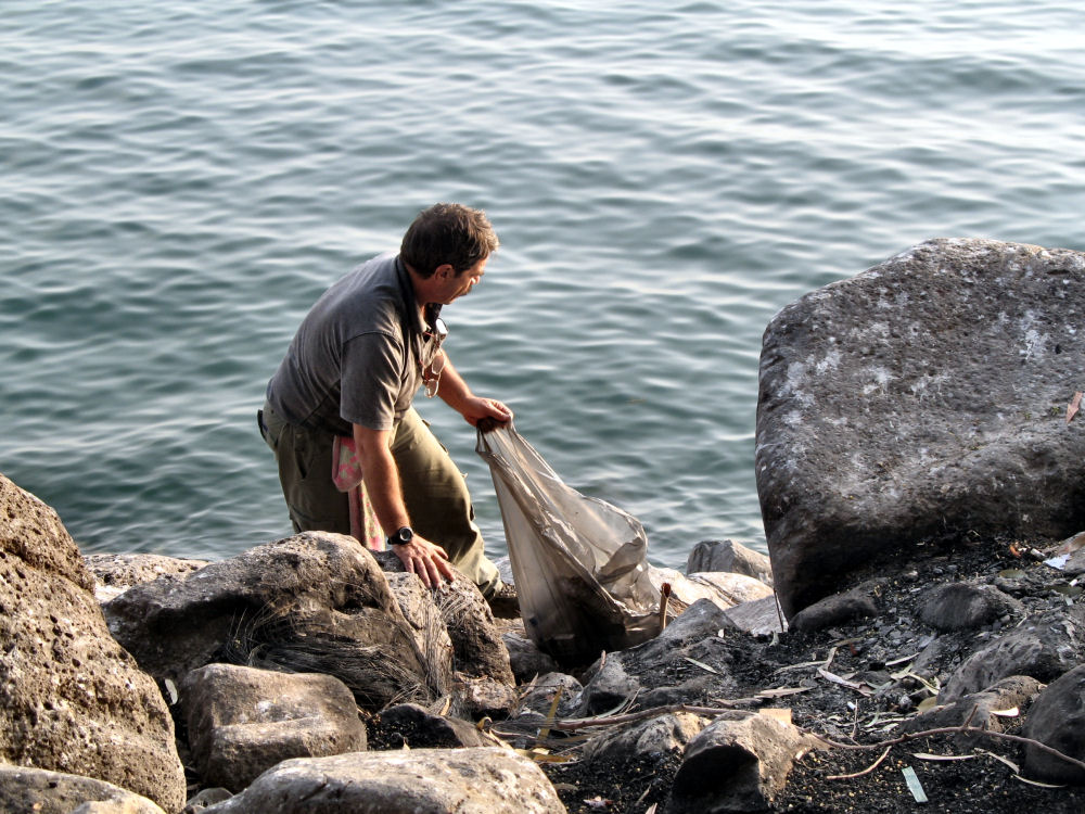 Было собрано более 10 мешков мусора, которые были предъявлены охране с предупреждением, что если мы увидим кого-либо, бросающего мусор на берег, мы его упакуем в такой же мешок (фото 13-17).